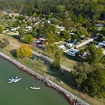 A Siófok - Szabadifürdő körzetben található Aranypart Camping Hotel biztosít széfet és éttermet 3 km-re a Siófok Óriáskerék területétől. Erkély, személyes széf és kanapé biztosított tartózkodása alatt ebben villában.